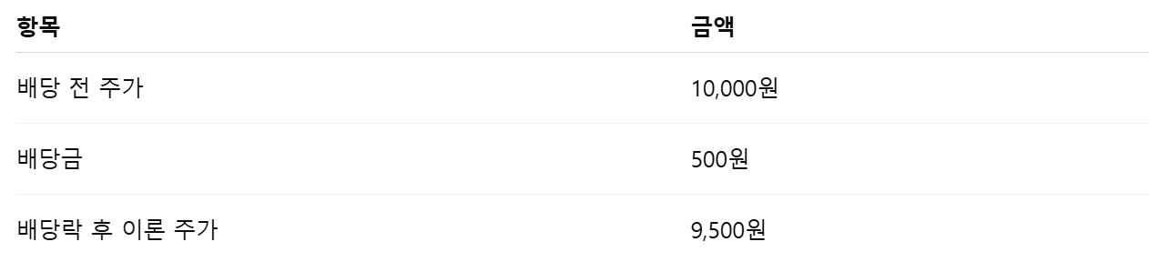 많은 분들이 놀라는 포인트입니다. 👉 “배당 받았는데 왜 주가는 떨어지지?”